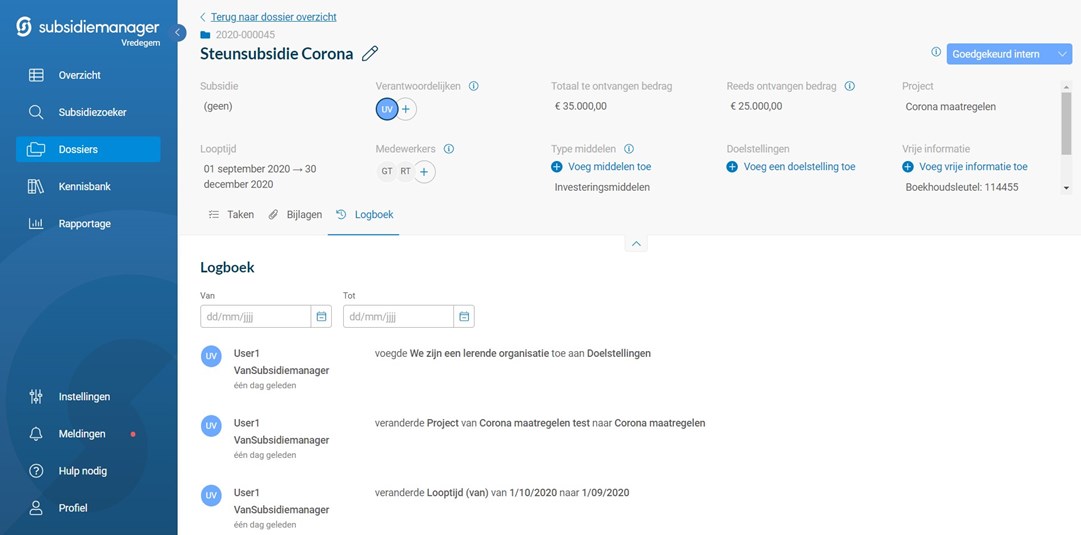 Een wijziging in uw dossier door gelijk welke medewerker wordt zorgvuldig geregistreerd in het logboek. Zo kan u nauwgezet alle wijzigingen volgen en bent u van elke stap die genomen wordt op de hoogte.