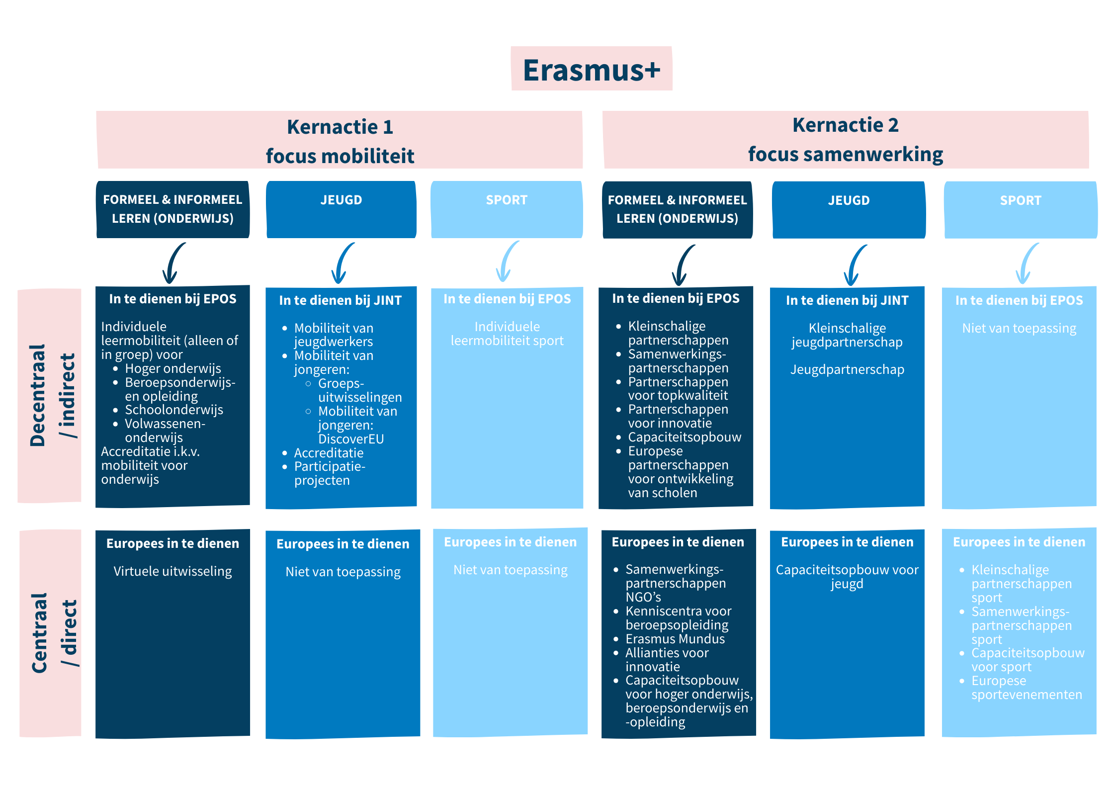 - Centraal/direct = door het Europese agentschap ECEA (Education and Culture Executive Agency)