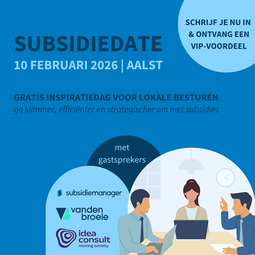 Subsidies aanvragen en beheren lijkt vaak complex en tijdssintensief. Maar dat hoeft het niet te zijn. Daarom organiseren Vanden Broele en IDEA Consult een inspiratiedag met gastsprekers die lokale besturen helpt om slimmer, efficiënter en strategischer om te gaan met subsidies.